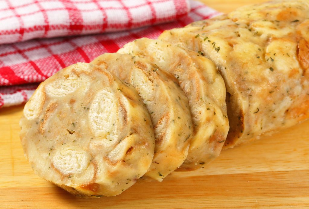 4. Eier verquirlen und mit Speck, Zwiebeln und Petersilie unter die Brotmasse heben.